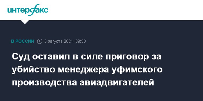 Суд оставил в силе приговор за убийство менеджера уфимского производства авиадвигателей