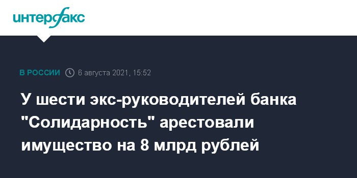 У шести экс-руководителей банка "Солидарность" арестовали имущество на 8 млрд рублей