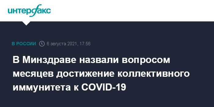 Москва. 6 августа. INTERFAX.RU - В России достигнуть формирования коллективного иммунитета к коронавирусу на уровне 80-90% можно за несколько месяцев, однако реальные сроки будут зависеть и от людей, заявил первый замминистра здравоохранения Виктор Фисенко.