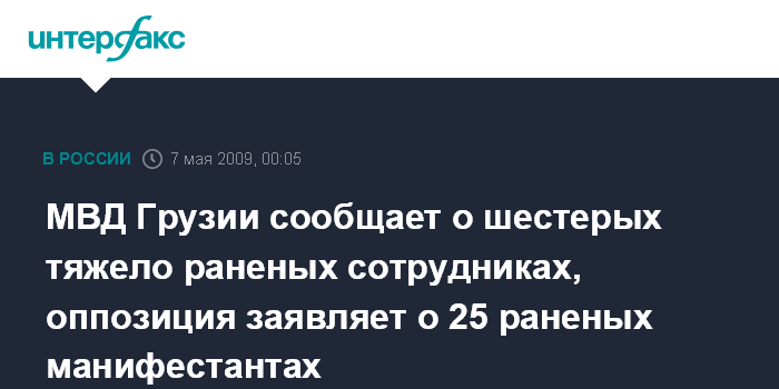 МВД Грузии сообщает о шестерых тяжело раненых сотрудниках, оппозиция заявляет о 25 раненых манифестантах