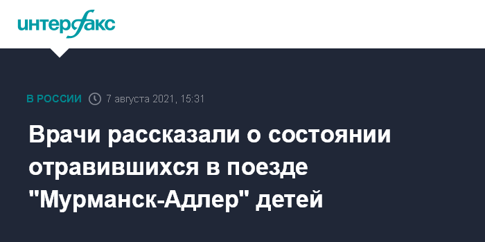 Врачи рассказали о состоянии отравившихся в поезде "Мурманск-Адлер" детей