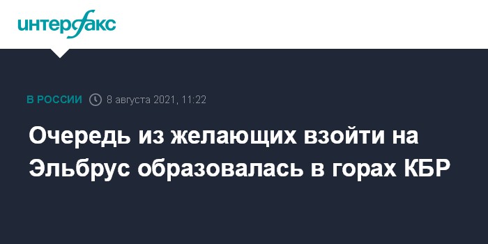 Москва. 8 августа. INTERFAX.RU - Множество туристов выстроились в очередь в горах Кабардино-Балкарии, ожидая возможности совершить восхождение на гору Эльбрус.