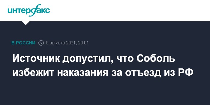 Москва. 8 августа. INTERFAX.RU - Бывшая юрист ФБК (запрещенная в РФ экстремистская организация, иноагент) Любовь Соболь, возможно, избежит ответственности за отъезд из страны, поскольку приговор в отношении нее еще не вступил в силу, сообщил "Интерфаксу" информированный источник.