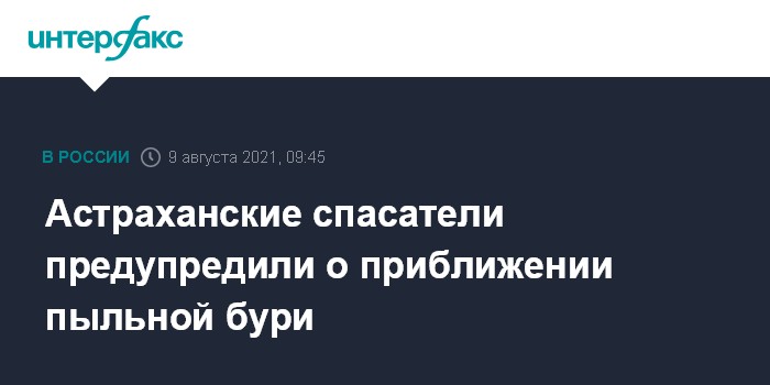 Москва. 9 августа. INTERFAX.RU - Астраханские спасатели предупреждают о прогнозируемом усилении ветра до 18 м/с и приближении пыльной бури к областному центру.