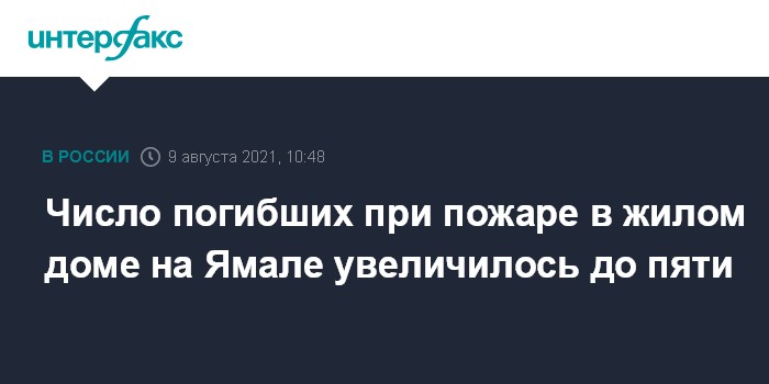 Число погибших при пожаре в жилом доме на Ямале увеличилось до пяти