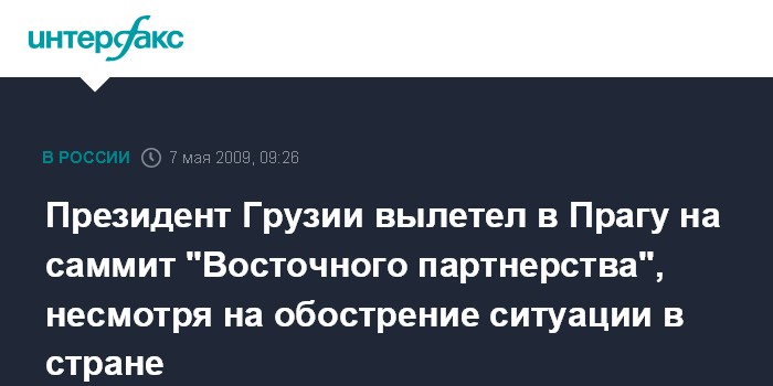Москва. 7 мая. INTERFAX.RU - Президент Грузии Михаил Саакашвили вылетел в Прагу, где через несколько часов планируется подписание документа по программе Евросоюза "Восточное партнерство", в том числе и с Тбилиси, сообщают грузинские СМИ.