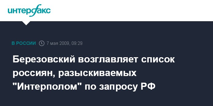 Березовский возглавляет список россиян, разыскиваемых "Интерполом" по запросу РФ