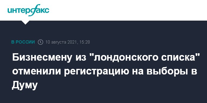 Бизнесмену из "лондонского списка" отменили регистрацию на выборы в Думу
