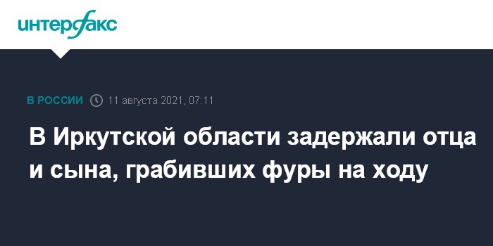Москва. 11 августа. INTERFAX.RU - Полицейские в Иркутской области задержали ранее судимых отца с сыном по подозрению в хищениях из грузовиков во время движения, сообщила в среду пресс-служба главного управления МВД по региону.