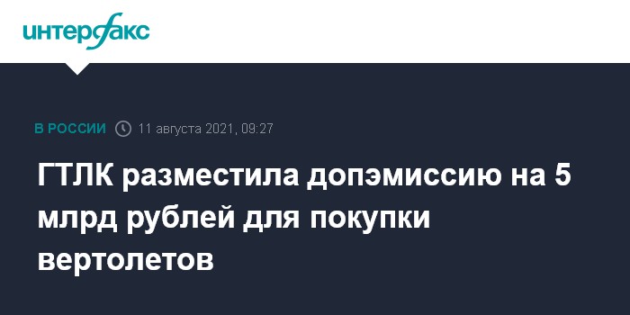 ГТЛК разместила допэмиссию на 5 млрд рублей для покупки вертолетов