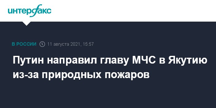 Путин направил главу МЧС в Якутию из-за природных пожаров