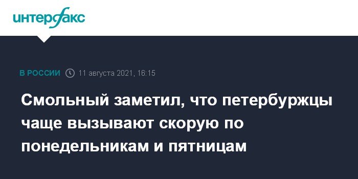 Смольный заметил, что петербуржцы чаще вызывают скорую по понедельникам и пятницам