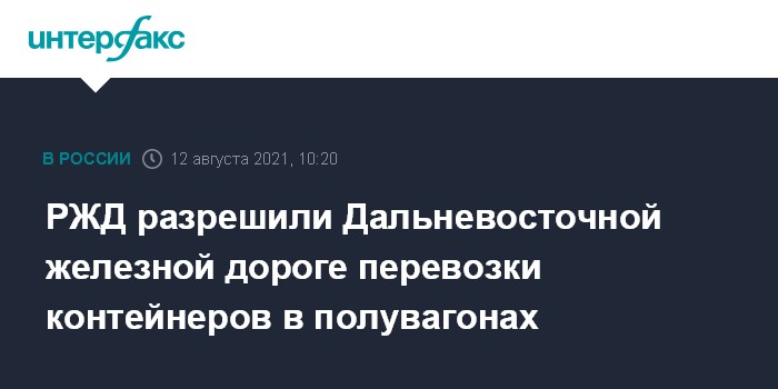 Москва. 12 августа. INTERFAX.RU - ОАО "Российские железные дороги" разрешило заключить договор между Дальневосточной железной дорогой (ДВЖД, филиал ОАО "РЖД") и ООО "Владивостокский морской порт "Первомайский" (принадлежит "Пасифик лоджистик", входит в группу "Соллерс") на тестовые перевозки груженых контейнеров в универсальных полувагонах до конца 2021 года. Об этом пишет газета "Ведомости" со ссылкой на телеграмму РЖД.