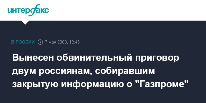 Вынесен обвинительный приговор двум россиянам, собиравшим закрытую информацию о "Газпроме"