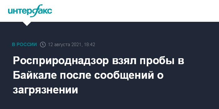 "10 августа Росприроднадзор с участием ЦЛАТИ взял пробы. На момент проведения заборов воды темных пятен не обнаружено, однако ученые обнаружили небольшую площадь загрязнения акватории озера Байкал, предположительно, пыльцой или цветением. Сейчас выполняются испытания государственной лабораторией (ЦЛАТИ)", - сообщили в ведомстве в четверг.