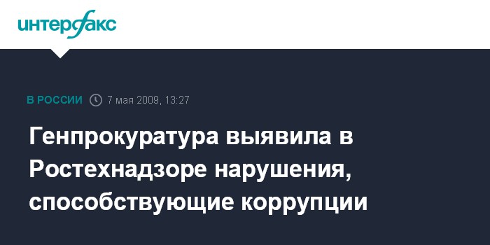 Москва. 7 мая. INTERFAX.RU - Генеральная прокуратура РФ выявила в Ростехнадзоре нарушения закона, создающие условия для коррупции и должностных злоупотреблений.