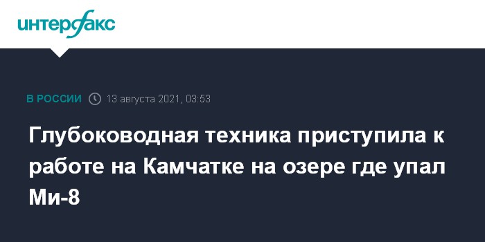 Москва. 13 августа. INTERFAX.RU - Военная глубоководная техника приступила к работе на Курильском озере в Южно-Камчатском заказнике, где в четверг утром упал вертолет Ми-8 с туристами, сообщает губернатор региона Владимир Солодов на своей странице в Инстаграм в пятницу.