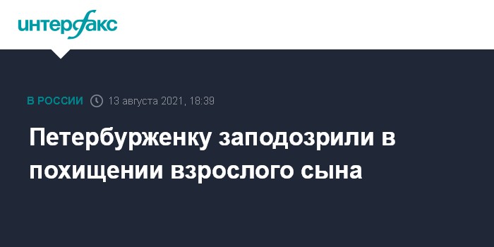 Москва. 13 августа. INTERFAX.RU - В Петербурге женщину заподозрили в причастности к похищению собственного взрослого сына. Ее и еще троих мужчин задержали по уголовному делу о похищении человека группой лиц по предварительному сговору, сообщили в СКР.