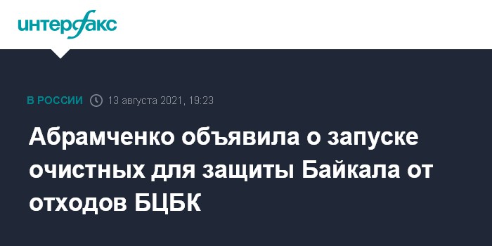 Москва. 13 августа. INTERFAX.RU - Федеральный экологический оператор завершил работы по созданию локальных очистных сооружений (ЛОС) с подключением линейных инженерных систем для защиты Байкала от отходов Байкальского целлюлозно-бумажного комбината (БЦБК).