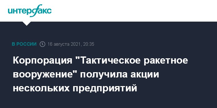 Корпорация "Тактическое ракетное вооружение" получила акции нескольких предприятий