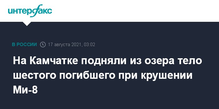 "В настоящий момент поднято тело шестого погибшего - одного из трех погибших, которые находятся в фюзеляже (вертолета на дне озера - ИФ)", - говорится в сообщении.