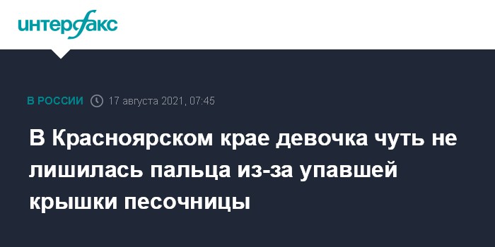 По сообщению СМИ, инцидент произошел в поселке Березовка. Шестилетняя девочка, закрывая деревянную крышку от песочницы, не смогла удержать ее и уронила. В результате крышка отсекла ребенку часть пальца на ноге. По словам мамы пострадавшей, девочка играла под присмотром старшей сестры. Травмированную доставили в больницу, где ей была оказана помощь.