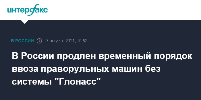 Москва. 17 августа. INTERFAX.RU - Премьер РФ Михаил Мишустин поручил продлить временный порядок ввоза в Россию подержанных праворульных автомобилей без установки системы "Эра-Глонасс".