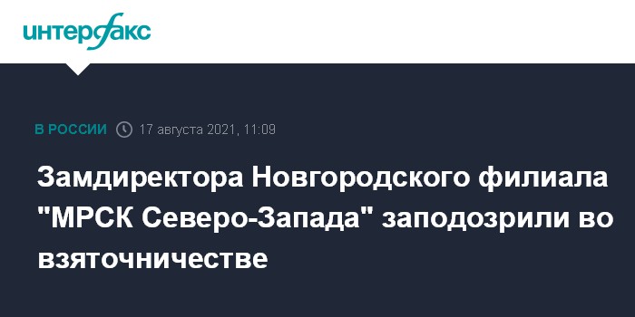 Замдиректора Новгородского филиала "МРСК Северо-Запада" заподозрили во взяточничестве