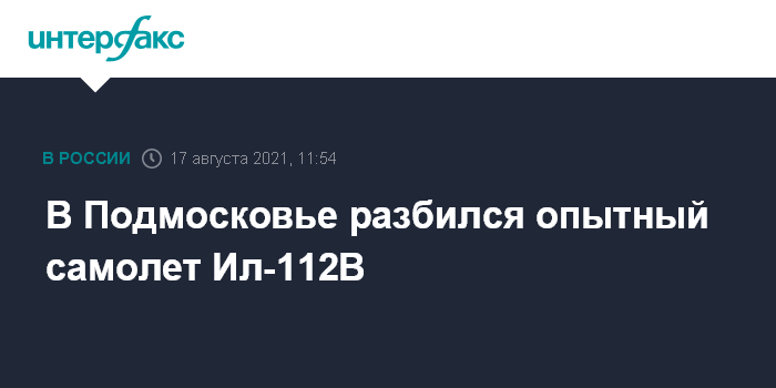 Москва. 17 августа. INTERFAX.RU - Опытный образец нового легкого транспортника Ил-112В потерпел аварию в районе подмосковной Кубинки, сообщили в пресс-службе Объединённой авиастроительной корпорации (ОАК).
