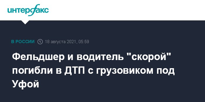 Москва. 18 августа. INTERFAX.RU - Фельдшер и водитель скорой помощи погибли в результате автоаварии в Уфимском районе Башкирии, сообщила пресс-служба УГИБДД по республике.