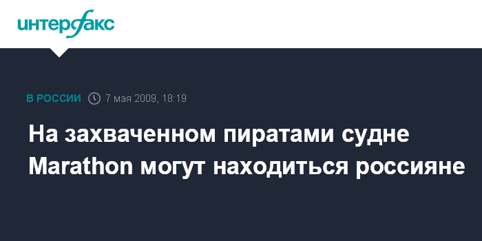 Москва. 7 мая. INTERFAX.RU - По мнению главного редактора издания "Морской бюллетень - Совфрахт" Михаила Войтенко, высока вероятность нахождения россиян на борту нидерландского сухогруза, захваченного в четверг пиратами в Аденском заливе.