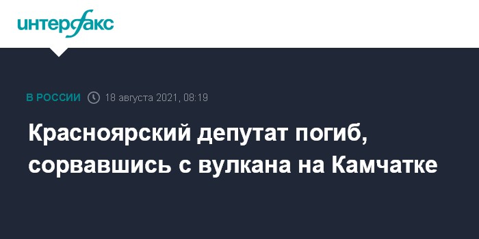 Москва. 18 августа. INTERFAX.RU - Депутат горсовета красноярского Железногорска Андрей Закалин сорвался, спускаясь с вершины вулкана Ключевской на Камчатке.