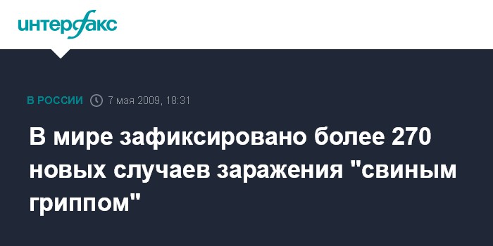 В мире зафиксировано более 270 новых случаев заражения "свиным гриппом"