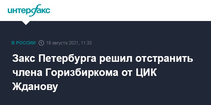 Москва. 18 августа. INTERFAX.RU - Заксобрание Петербурге решило отстранить от должности члена городского избиркома с правом решающего голоса Марину Жданову, которую в избирательную комиссию выдвинул Центризбирком, передал корреспондент "Интерфакса".