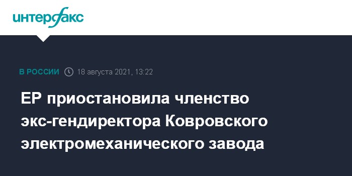 ЕР приостановила членство экс-гендиректора Ковровского электромеханического завода