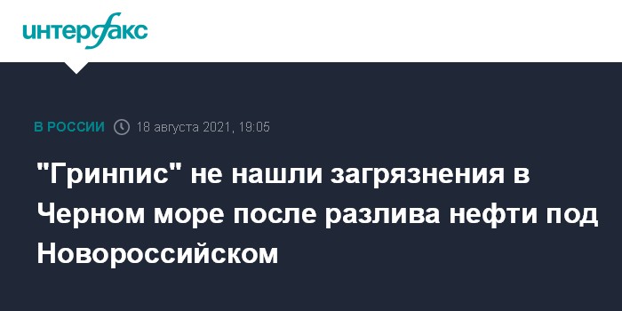 Москва. 18 августа. INTERFAX.RU - Представители российского отделения "Гринпис" провели экспедицию после разлива нефтепродуктов в Черное море в районе Новороссийска, в итоге они не обнаружили видимых следов загрязнения, сообщил руководитель климатического и энергетического направления "Гринпис" Василий Яблоков.