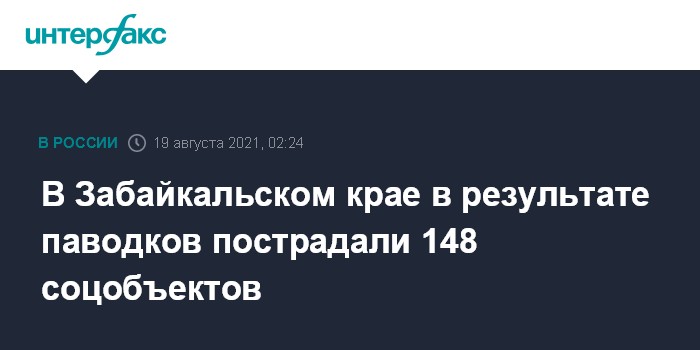Москва. 19 августа. INTERFAX.RU - В Забайкальском крае в результате паводков пострадали 148 социальных объектов, сообщил губернатор Александр Осипов.