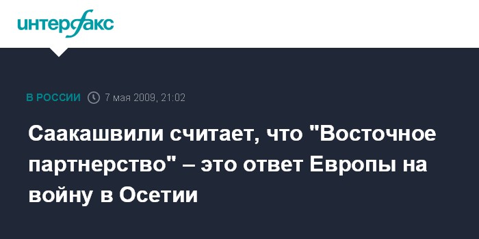 Тбилиси. 7 мая. INTERFAX.RU - Президент Грузии Михаил Саакашвили заявляет, что инициатива Евросоюза "Восточное партнерство" является ответом на августовские события на Кавказе.