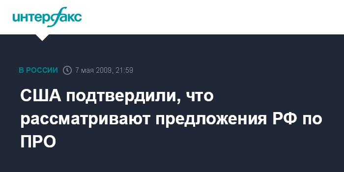 Вашингтон. 7 мая. ИНТЕРФАКС - США подтвердили, что в рамках своего обзора в сфере противоракетной обороны (ПРО) рассматриваются и российские предложения в этой области, заявил глава МИД РФ Сергей Лавров.
