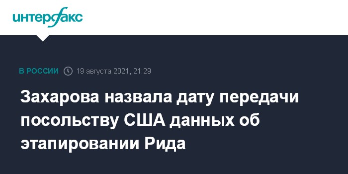 Захарова назвала дату передачи посольству США данных об этапировании Рида