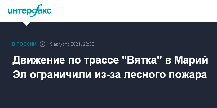 Москва. 19 августа. INTERFAX.RU - В связи с крупным пожаром в Медведевском районе Марий Эл в четверг ограничено движение по федеральной дороге "Вятка".