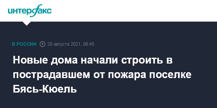 Москва. 20 августа. INTERFAX.RU - Строительство новых домов началось в якутском селе Бясь-Кюель Горного района, где лесной пожар уничтожил более 30 домов и построек, написал в соцсетях глава республики Айсен Николаев.