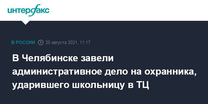 Москва. 20 августа. INTERFAX.RU - Полиция Челябинска возбудила два административных производства по итогам проверки сообщений о конфликте в ТРК "Космос", в ходе которого пожилой охранник ударил по лицу 14-летнюю школьницу. Об этом сообщили "Интерфаксу" в пресс-службе городского УМВД в пятницу.