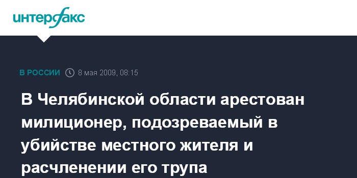 В Челябинской области арестован милиционер, подозреваемый в убийстве местного жителя и расчленении его трупа