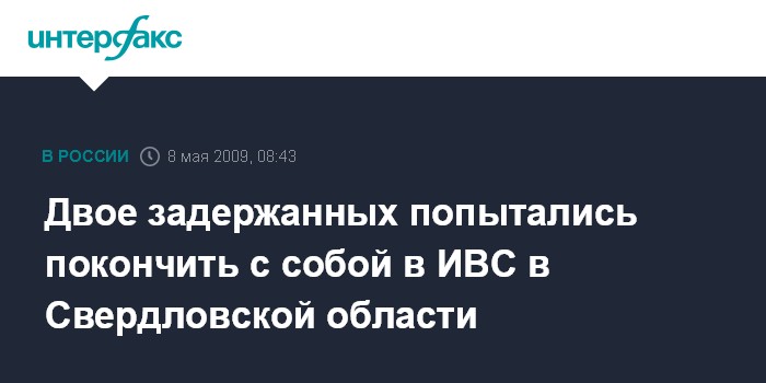 Москва. 8 мая. INTERFAX.RU - В городе Асбесте Свердловской области в четверг двое административно арестованных попытались покончить с собой не в СИЗО, а в изоляторе временного содержания УВД города.