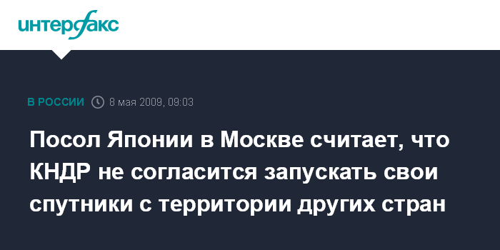 Посол Японии в Москве считает, что КНДР не согласится запускать свои спутники с территории других стран