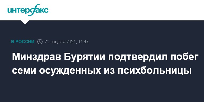 Москва. 21 августа. INTERFAX.RU - В министерстве здравоохранения Бурятии подтвердили, что из республиканской психиатрической больницы сбежали семеро мужчин, осужденных на принудительное лечение.