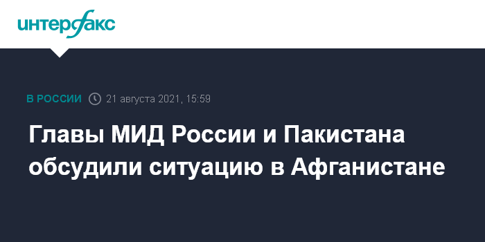 Главы МИД России и Пакистана обсудили ситуацию в Афганистане