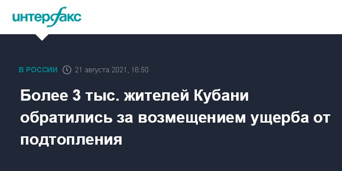 Москва. 21 августа. INTERFAX.RU - Ущерб от подтоплений просчитывают в Краснодарском крае, уже приняты заявления, по которым компенсация составит суммарно более 160 млн рублей.