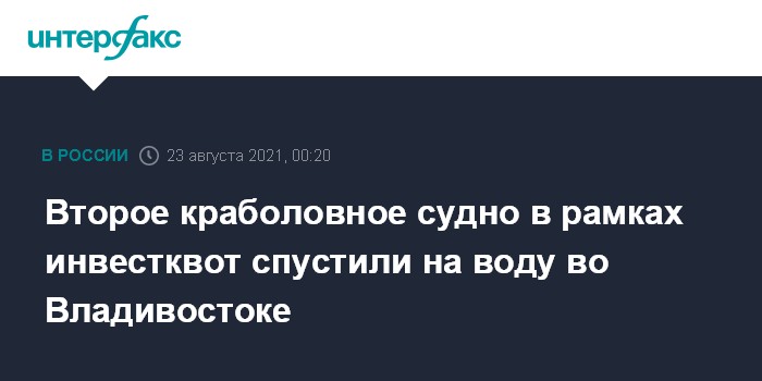 Москва. 23 августа. INTERFAX.RU - Второе краболовное судно, построенное в рамках инвестиционных квот, спущено в пятницу во Владивостоке на судостроительном заводе "Восточная верфь".